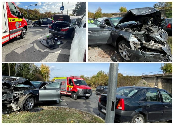 În urma impactului, al doilea autoturism a fost proiectat într-un alt autoturism, ce se deplasa pe str. Crinului, către intersecția cu str. Gheorghe Șincai, condus de un bărbat de 45 de ani, din Pitești.
