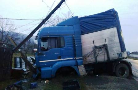 Exact în locul unde, azi-noapte, un  TIR cu marfă a ieșit de pe carosabil, rupând un stâlp în drumul lui (foto 2), în urmă cu puțin timp a murit un bărbat.