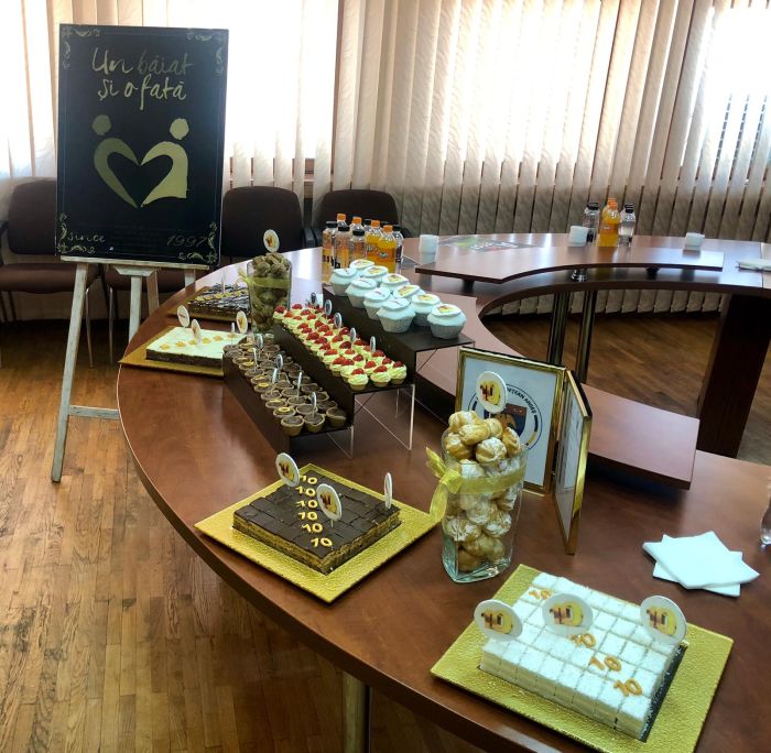 Cofetăria “Un băiat și o fată” s-a alătura demersului Consiliului Județean Argeș de a-I recompense pe elevii de 10 la evaluarea națională pregătind un spectaculos Candy Bar personalizat, cu prăjituri delicioase în cele mai apetisante forme și culori.