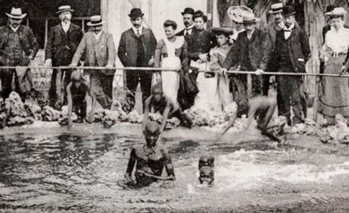 Numai că belgienii au realizat un fel de grădină zoologică pentru a-I prezenta pe congolezi și cultura lor, oamenii, considerați a fi un fel de animale caudate, fiind ținuți în spatele unui gard de sârmă, iar vizitatorii oferindu-le banane.