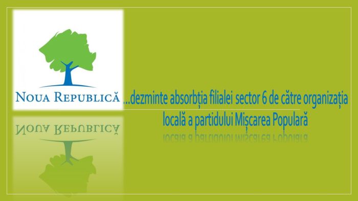 Reprezentanții partidului Noua Republică informează că anunțul privind absorbția organizației de partid din Sectorul 6 de către filiala locală a Partidului Mișcarea Populară este unul fals.
