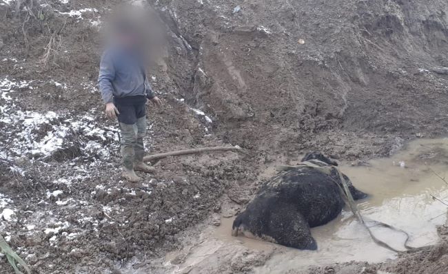 În această după-amiază, pompierii vâlceni împreună cu reprezentanți ai comitetul local pentru situații de urgență al comunei Pesceana au salvat o bovină de aproximativ o tonă, captivă într-un pârâu din localitate.