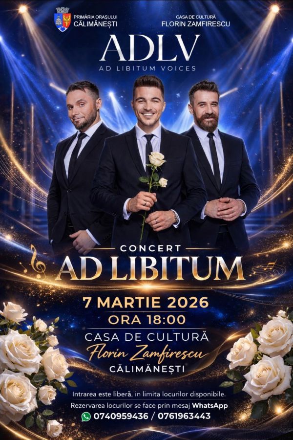 Sâmbătă, 7 martie, unul dintre cele mai apreciate și iubite grupuri pop-opera din România, Ad Libitum Voices, ajunge la Călimănești cu un concert extraordinar.