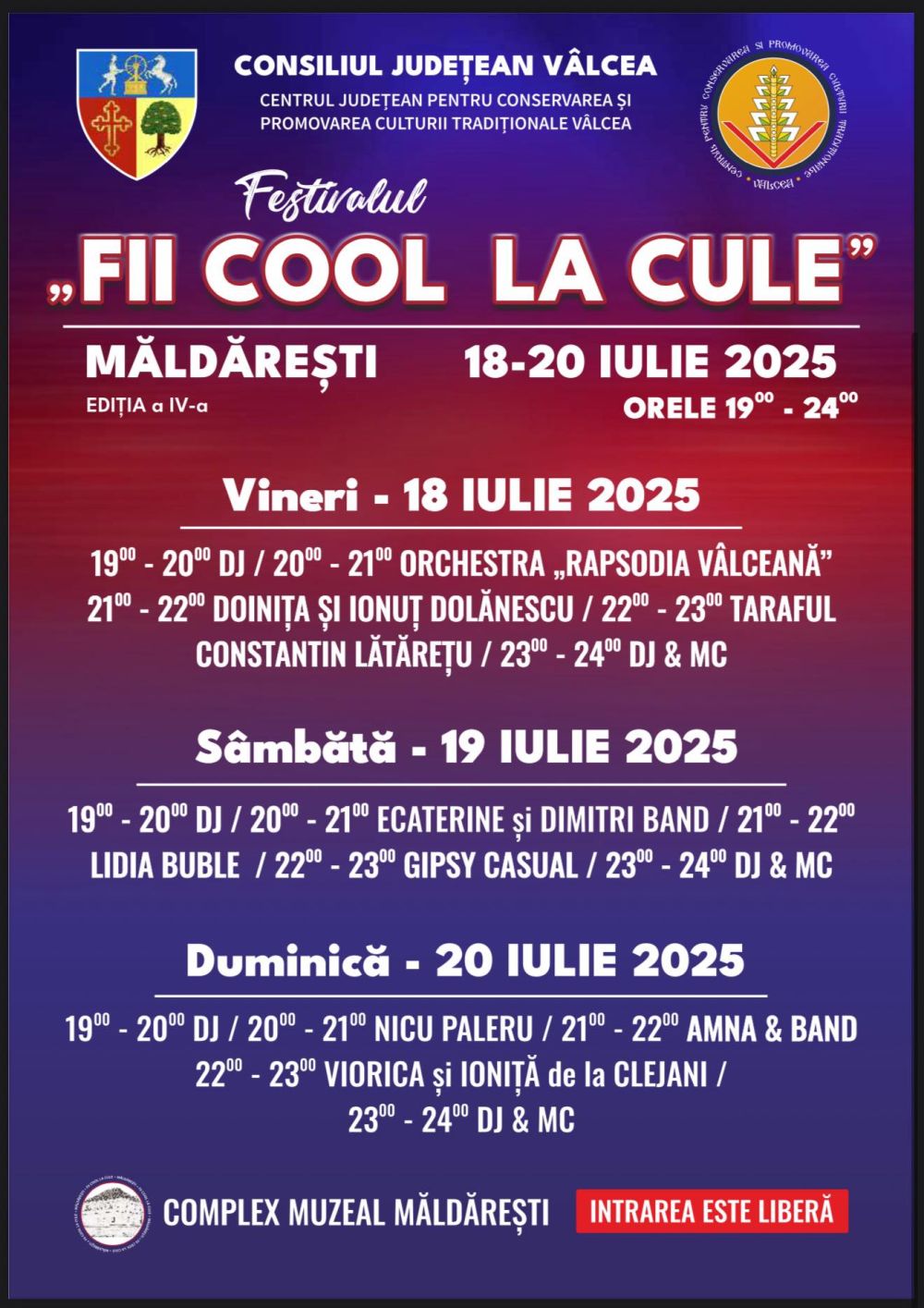 „Ne pregătim pentru cel mai așteptat festival al verii: FII COOL LA CULE! Între 18-20 iulie, vă așteptăm cu trei seri de distracție și muzică bună, într-un loc frumos și încărcat de istorie: lângă Culele Duca și Greceanu din Măldărești! Fiindcă ne dorim ca totul să fie perfect, astăzi am avut o întâlnire cu toți factorii implicați în desfășurarea festivalului și am pus la punct ultimele detalii organizatorice. Vă așteptăm cu drag, la cel mai tare festival al verii: FII COOL LA CULE! Intrarea este LIBERĂ!” – a spus Constantin Rădulescu, președintele Consiliului Județean Vâlcea.