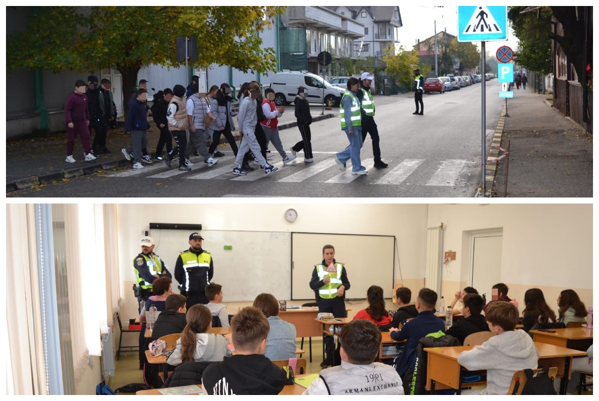 Pentru a-i implica direct în menținerea siguranței rutiere, elevii au fost echipați cu palete de dirijare, veste reflectorizante și șepci inscripționate cu „PATRULA ȘCOLARĂ”. Sub îndrumarea polițiștilor, aceștia au asigurat traversarea copiilor pe trecerea de pietoni din zona școlii, punând în practică regulile învățate la orele de educație rutieră.