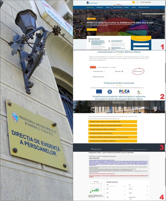 În cadrul proiectului ”Servicii informatice integrate pentru simplificarea procedurilor on-line şi reducerea birocraţiei la nivelul municipiului Râmnicu Vâlcea”, pe site-ul Primăriei municipiului Râmnicu Vâlcea, la adresa www.primariavl.ro, există posibilitatea programării on-line pentru operaţiuni ce sunt de competenţa Direcţiei de Evidenţă a Persoanelor: eliberare de acte de identitate, stabilirea datei căsătoriei civile sau transcrierea certificatelor sau extraselor de stare civilă.