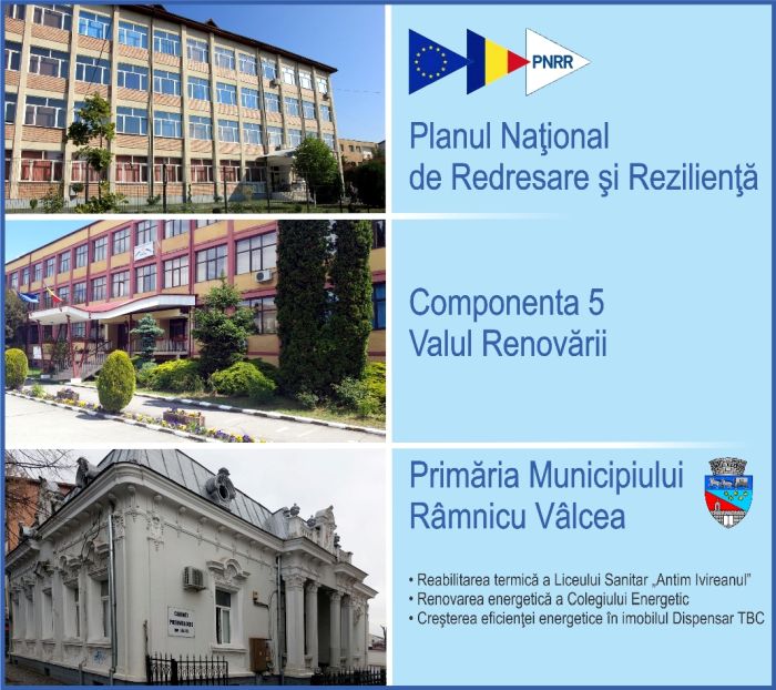 Proiecte vizate sunt: Reabilitarea termică a Liceului Sanitar „Antim Ivireanul” – în valoare de 13.878.570,08 lei, Renovarea energetică a Colegiului Energetic – în valoare 19.267.707,71 lei și Creșterea eficienței energetice în imobilul Dispensar TBC – cu valoarea de 1.296.495,43 lei.