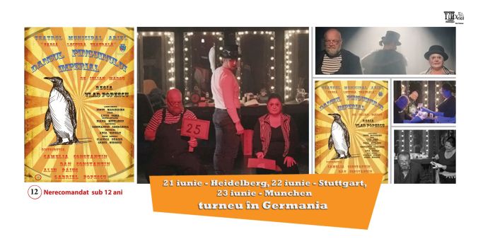 După succesul avut la Festivalul Internațional de Teatru de la Sibiu (FITS 2019), Teatrul Municipal “Ariel” Râmnicu Vâlcea este invitat în Germania cu „Dansul pinguinului imperial” (farsă-lectură teatrală) de Iulian Margu, regia Vlad Popescu.