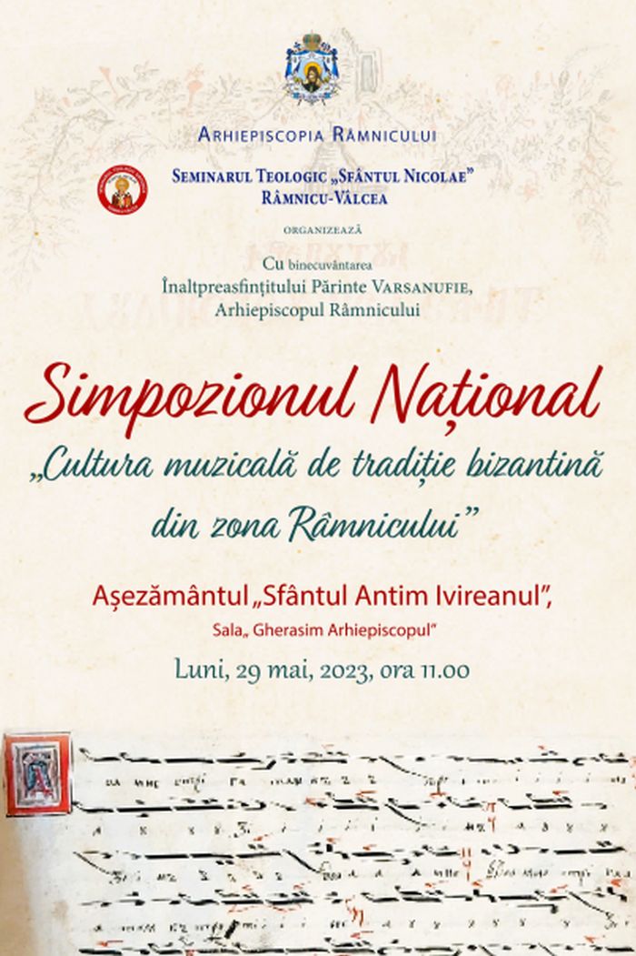 Cu binecuvântarea Înaltpreasfințitului Părinte Varsanufie, Arhiepiscopul Râmnicului, pe data de 29 mai, Arhiepiscopia Râmnicului, organizează Simpozionul Național „Cultura muzicală de tradiție bizantină din zona Râmnicului”.